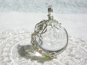 ★レッスン2~Kuthumi®独特のクリスタルビーズの配色と入れ方の説明。球体とハートの形状の石を制作。