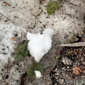 あっカワ(・∀・)イイ!! 残雪の上に白いハートの雪玉♡
