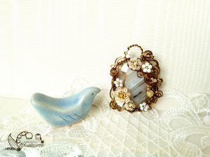水晶やホワイトアゲート、ブルーレースアゲートの花をアゲートの水面に浮かべました💎✨