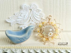そんなひまわりが、胸にあるとなんだか元気をもらえそうだし、その元気を周りに分かち合えそうだな~って思ったので、天然の水晶玉で作ってみる事に🌻💓