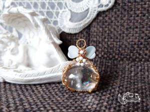 表面は、クリア+白のクリスタルビーズを、