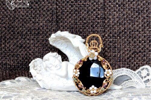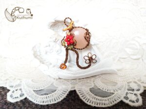 ゴールドワイヤーで赤い花を入れたМJewelryを作って欲しいとのご依頼で作ったもの。