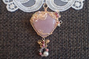 集めたローズクォーツの一部を眺めながら、祈りのクリスタルグリッドを作ってみたりして石と戯れながら、今日は1つを取り出してドレスアップしてみました❤️