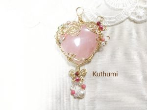 集めたローズクォーツの一部を眺めながら、祈りのクリスタルグリッドを作ってみたりして石と戯れながら、今日は1つを取り出してドレスアップしてみました❤️