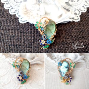 それぞれの色に感じる平和・冷静・品位を纏っている雰囲気にしたくて、グリーンに輝くラブラドライトを勾玉styleにドレスアップしました✨