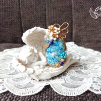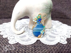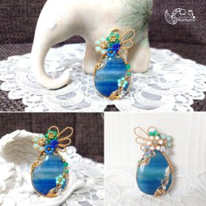 ハワイの青空と、次から次に押し寄せて来る海の波の様なストライプの石面を持つ、アルゼンチン産のブルーカルサイトに羽根をつけて️海の天使にドレスアップしました✨