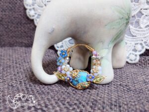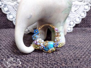 ターコイズ色の光を放つボルダーオパールに、ブルーレースアゲートやソーダライト、アメジストアマゾナイトなどのブルー系の花達をつけて、フラワーリース風Jewelryにドレスアップしてみました( ꈍᴗꈍ)✨