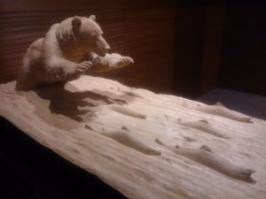 動物の骨格や毛並みや、その時に感じていたであろう熊の感情が伝わる木彫り✨