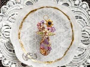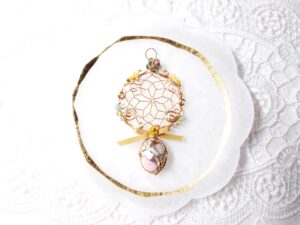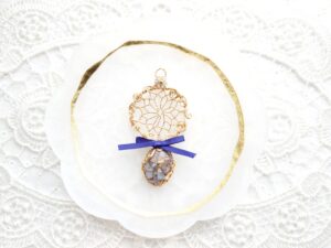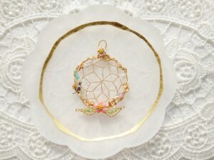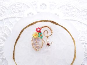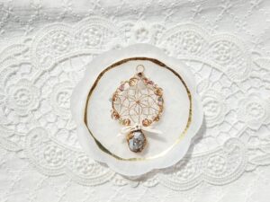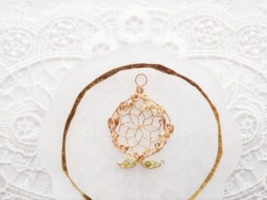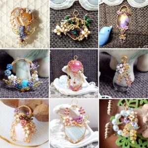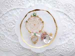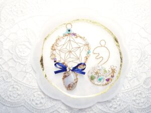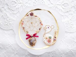 2025年ラッキーカラーで作る巳年Jewelry、ワイヤーとビーズで作るドリームキャッチャーJewelry、石を包んだ編み込みアレンジJewelry、石をつけたドリームキャッチャーJewelry、藤の花とカット水晶Jewelry、葉とミニ天使のJewelry✨