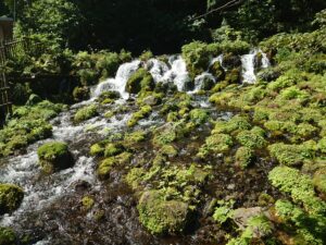 ここに降り積もった雪が春になって解け始め、山に浸透し、やがて麓にミネラルたっぷりの水がふきだす。