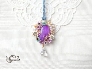 ただ、沢山のクリスタルビーズを使う分Jewelry自体が重くなるので、細身のチェーンのネックレスでは首に負担が掛かってしまうこともあり、ある一方で軽量化も意識しつつ✨