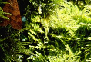 大地からしみ出てきた水が、苔を伝わり雫となって落ちる。ミネラルたっぷりの清水が次々と生まれ、川となっていく。