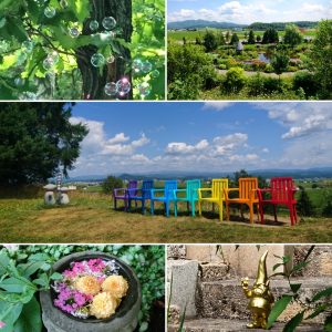 薔薇・エキナセア・マーガレット・紫陽花など、あの日愛でた花達とガーデン内で飛んでいたシャボン玉。庭内をパトロールしていた鶏や鴨。帰り運転中に目の前に突如現れた鷹が印象的だったので鳥を入れて…今彼女が拡げているご縁の輪を思い出の花輪に変えてデザインして🌻🌿