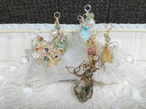 かなり小さなタンブルやカボションや原石を、Kuthumistyle®️のモチーフやビーズ達でドレスアップしていきます💕