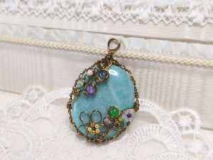 午後からは、お二人が選んだ爽やかな水色のレムリアンアクアティンカルサイトとシルバーのラメが掛かったようなアマゾナイトを、それぞれが好きなデザインでドレスアップしていき…