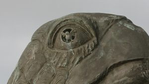 そう、それとビックリしたのは、ここに粟津潔さんが制作した亀のオブジェがあるのですが、よ~くみると大亀の右目の中に鳥が、左目に天使がいるの💫