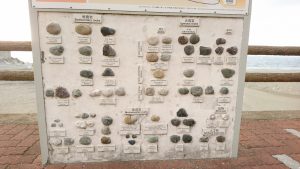 ここには親切に石の種類と出来た年代が分かる実物の表があるので、みながら探すことも出来そうだけど✨