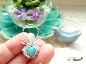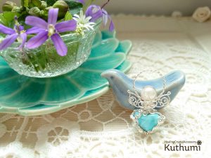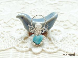プックリ小さいハートのラリマーだったので、ずっーとクリスタルグリッド用にしていたのですが、今朝思い立って守護天使にドレスアップしました💗