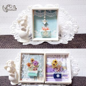 新しい創造&作っていて楽しい(*˘︶˘*).。.:*♡✨ので、このまま小さなフラワーリースを飾ったBox絵画、多色の天使を集わせたBox絵画、バッグにチャームを下げたBox絵画等……も作りたいけれど、この感じで作っていくと、楽しくってこのままハマってしまう気もするので(笑)